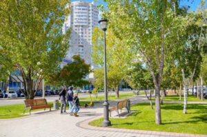 Ататүрік саябағындағы жағалауды абаттандыру аяқталды, Триатлон саябағы бойындағы жағалауды реконструкциялау жұмысы жүріп жатыр. Сондай-ақ, жаңа қоғамдық кеңістік – Бейбітшілік пен келісім саябағын салу жұмысы да аяқталуға жақын. Оның орталық элементі – мәңгілікті, үйлесімділікті және ұрпақтар сабақтастығын бейнелейтін Өмір ағашы болады. Өмір ағашының айналасында мазмұндық мәнге ие төрт инсталляция орналасады, олардың әрқайсысы бейбітшілік, келісім және рухани бірлік құндылықтарын бейнелейді. Бұдан бөлек, саябақта каскадты сарқырамалар, «жұлдызды аспан» туннелі, жаяу жүргіншілер жолы, демалыс аймақтары жасалып, жасыл екпелер отырғызылды. Бұл оны тек символдық емес, сондай-ақ қала тұрғындары мен қонақтары үшін жайлы орынға айналдырады. Қаланы абаттандыруға құрылыс компаниялары да араласады.