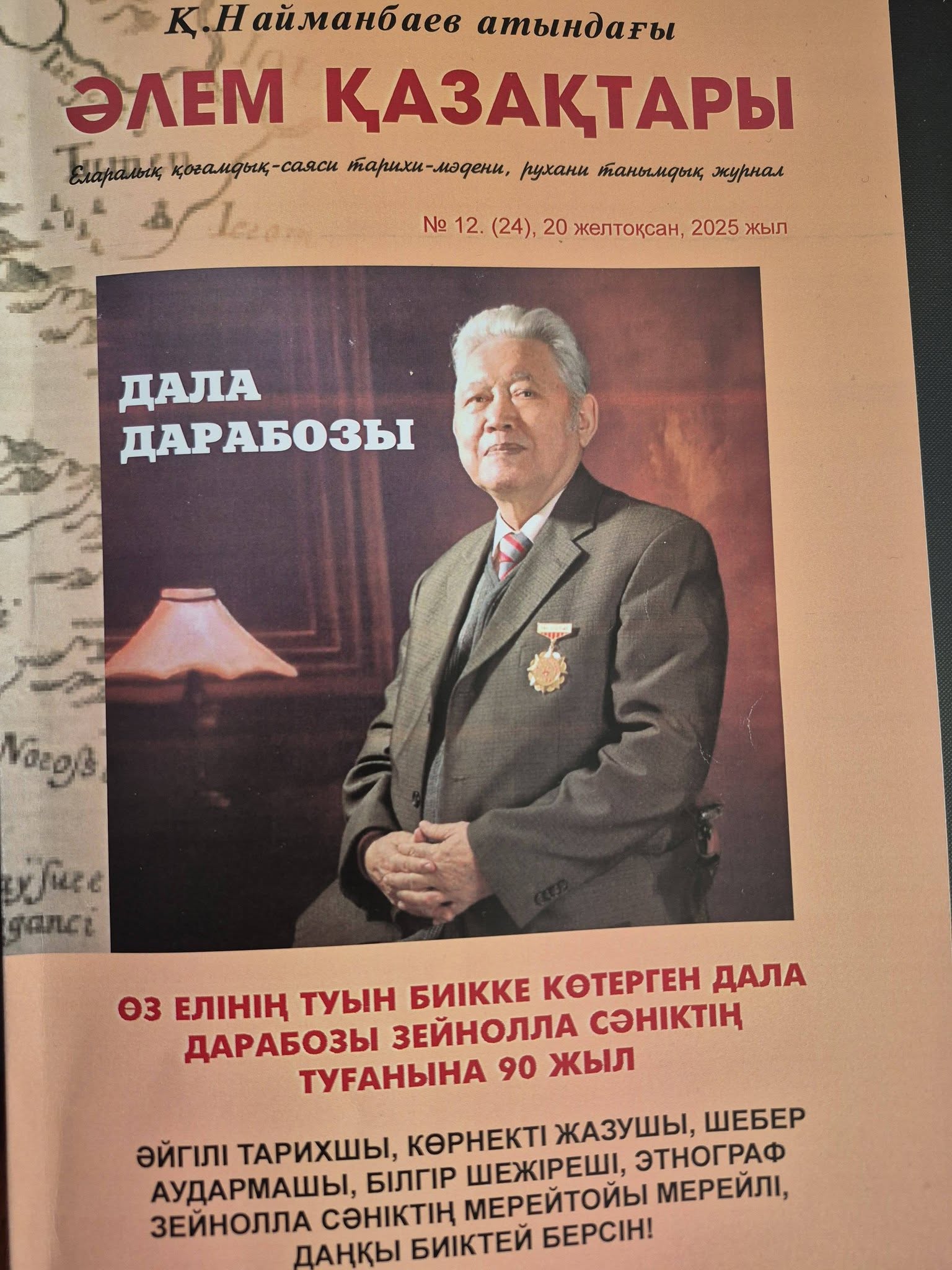Ия, «Әлем қазақтары» журналының кезекті нөмірі «ӨЗ ЕЛІНІҢ ТУЫН БИІККЕ КӨТЕРГЕН ДАЛА ДАРАБОЗЫ» деген тақырыппен әйгілі тарихшы, көрнекті жазушы, шебер аудармашы, білгір шежіреші, этнограф Зейнолла Сәніктің 90 жылдығына арналды.