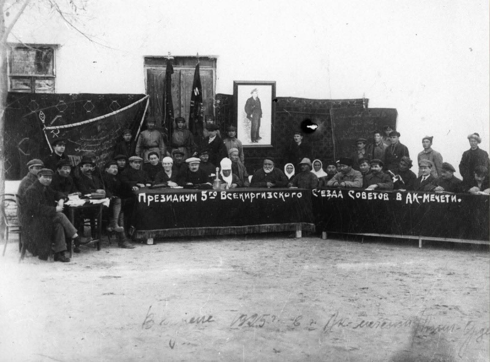 (Суретте: ҚазАКСР Кеңесі V съезінің Президиумы, Ақмешіт, 15-19.04.1925-ҚР ОМКФДЖА)
